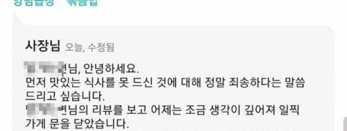 배달 음식 버린 배민 리뷰, 사장님 답변