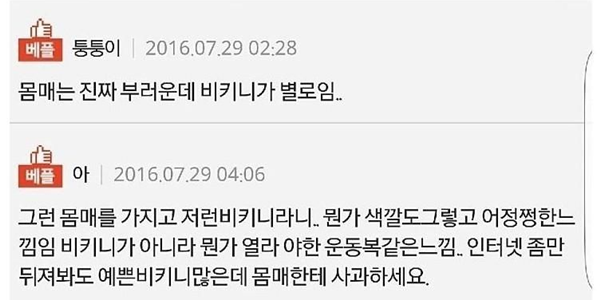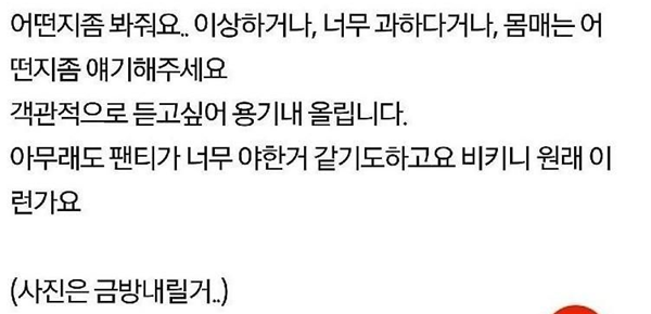 비ㅋ니 어떤지 봐달라는 20대 여자