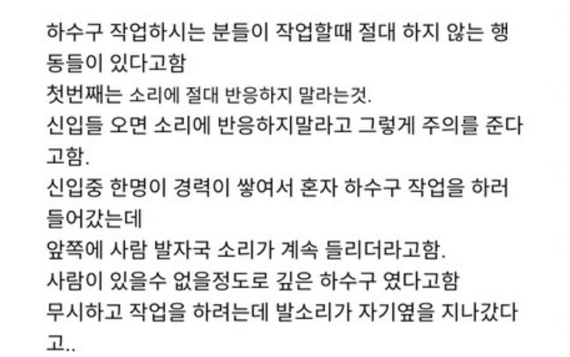 하수구 작업하시는 분들의 금기사항
