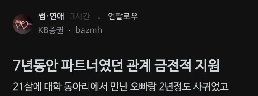 야ㅅ 파ㅌ너에게 7년간 금전 지원을 받았던 여성