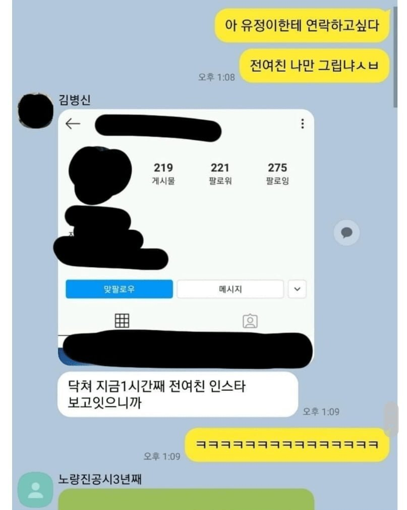 전여친을 잊지 못하는 단톡방