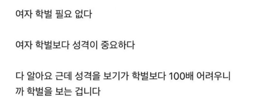 결혼할때 여자 성격 보다 학벌 보는 이유