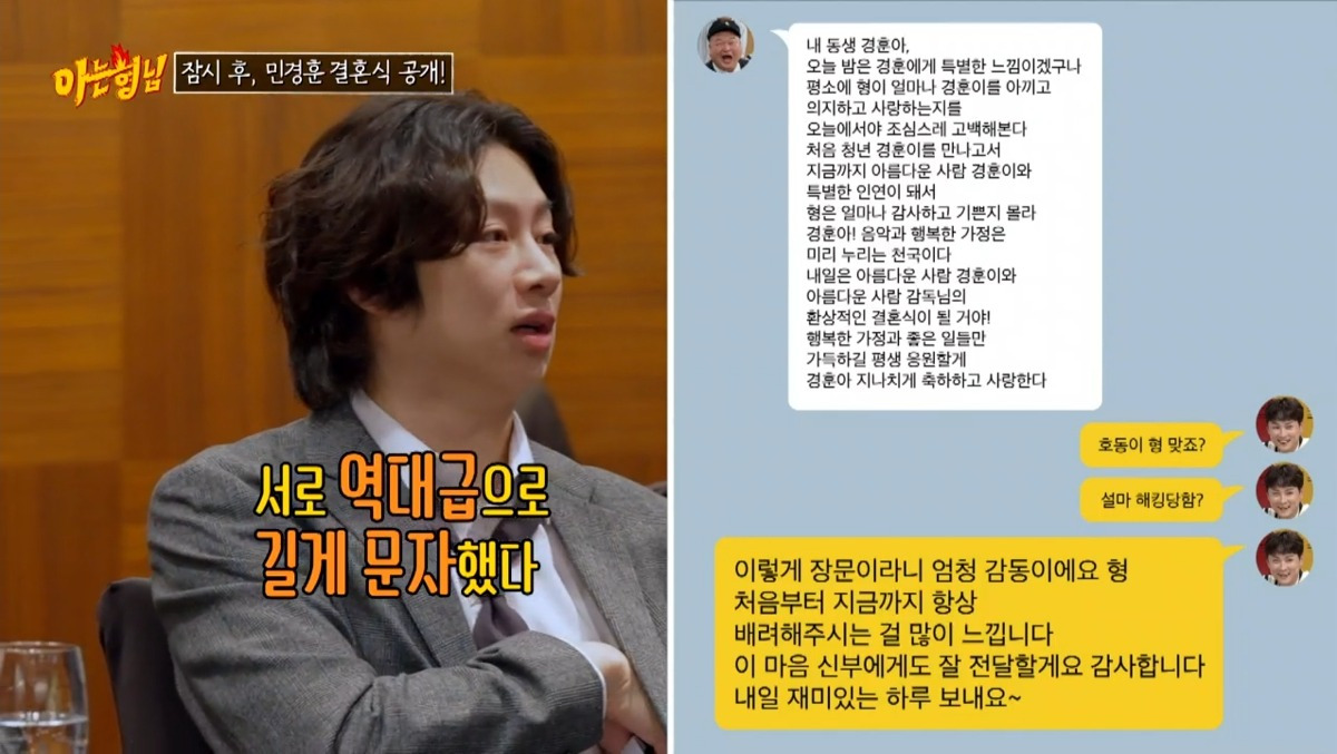 민경훈 결혼식 전날밤 강호동이 보낸 문자