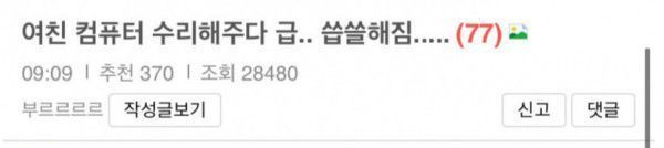 여친 컴퓨터 수리하다 씁쓸해짐