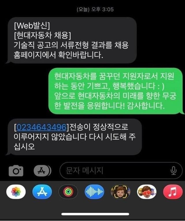 현대차 불합격하고 문자보냈는데 답장왔어