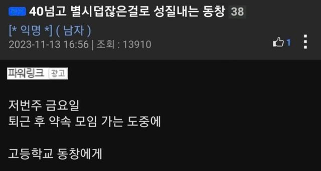 나이 40넘고 별시덥잖은걸로 성질내는 동창