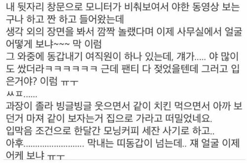 당직근무 중 ㄸ치다 여직원에게 걸렸습니다