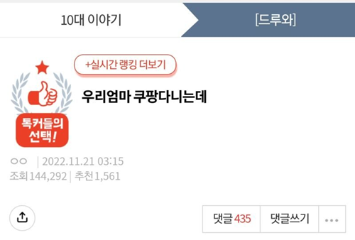 우리 엄마 새벽에 쿠팡 알바 다니는데 ㅎㄷㄷ