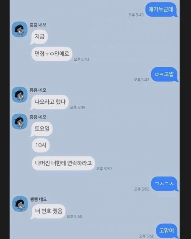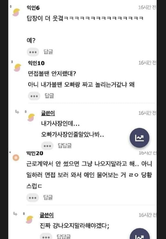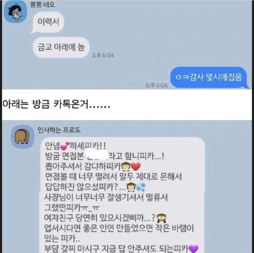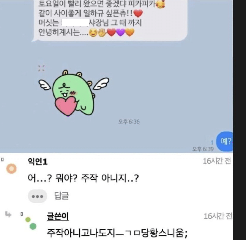 새로 뽑은 알바생 카톡 좀 봐봐…