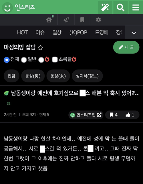 남동생이랑 호기심에 야ㅅ 해본 친누나