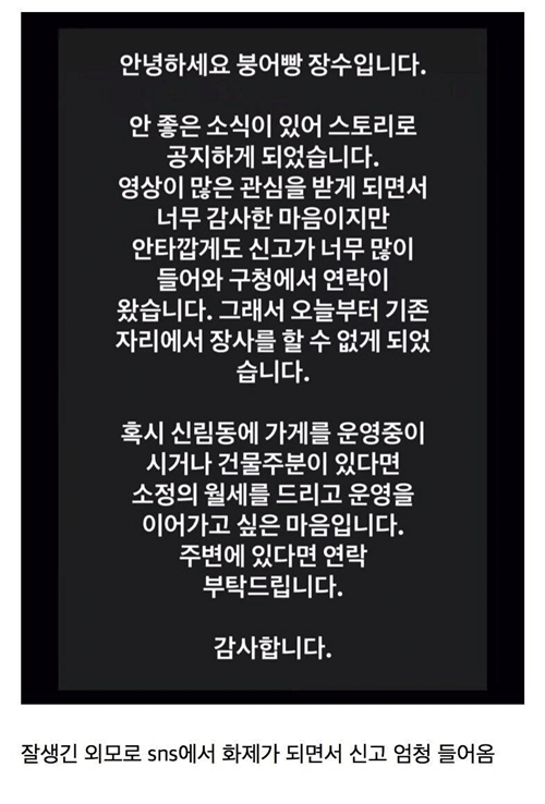 잘생겨서 난리났던 붕어빵 사장님의 최후 ㄷㄷㄷ