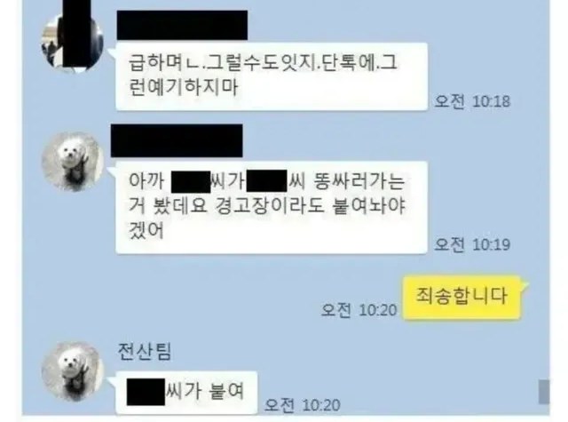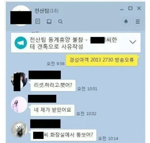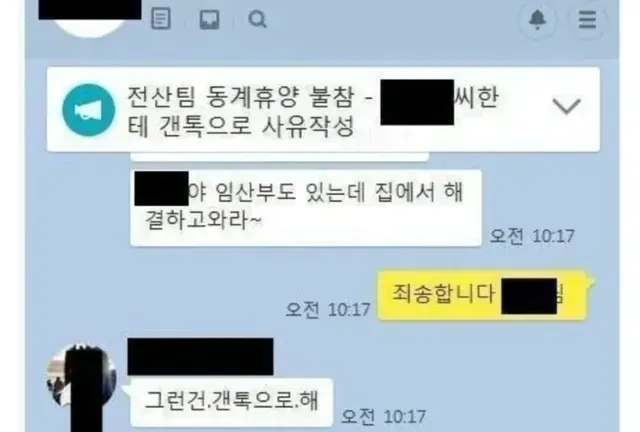 ㄸ싼 뒤 회사 단톡방 분위기….