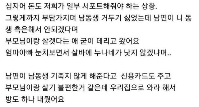 남편이 시누이를 자주 오게 냅둡니다…