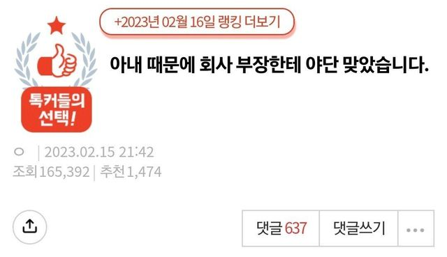 아내 때문에 회사 인생 나ㄹ갈뻔한 남편