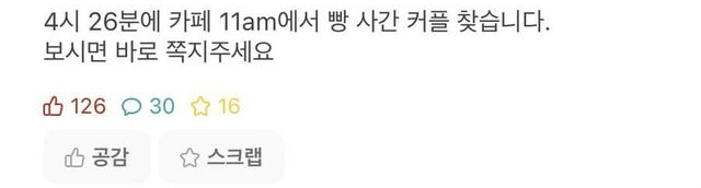 4시 26분 카페 11am에서 빵사간 커플찾습니다 쪽지주세요..