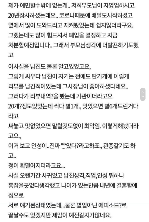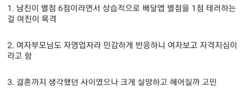 남친의 배달 리뷰보고 이별 결심한 여자