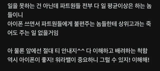 나 파트장인데 아이폰 쓰면 고과 안줄거임