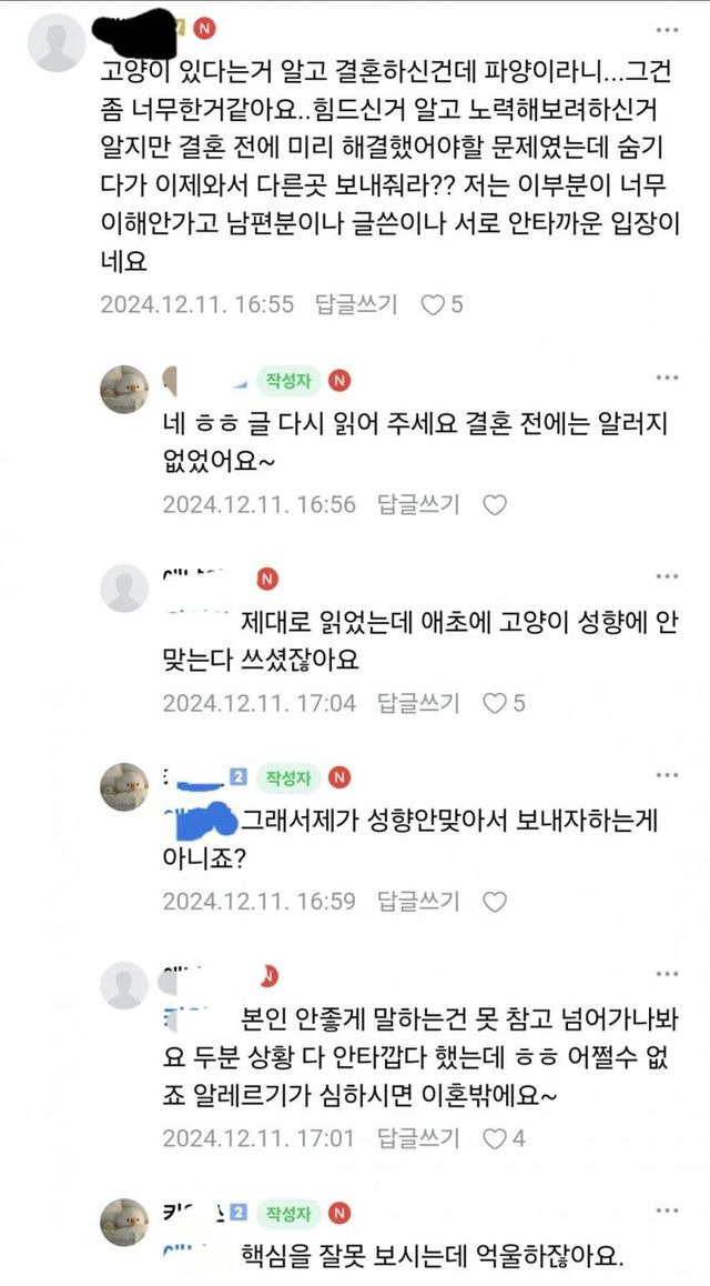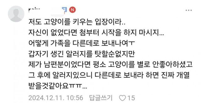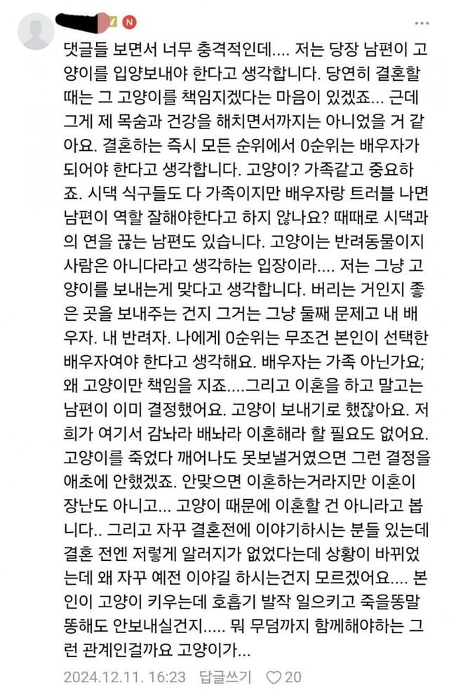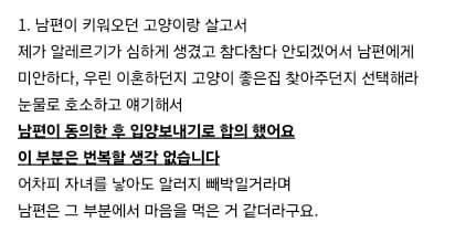 고양이 때문에 이혼 고민중인 아내