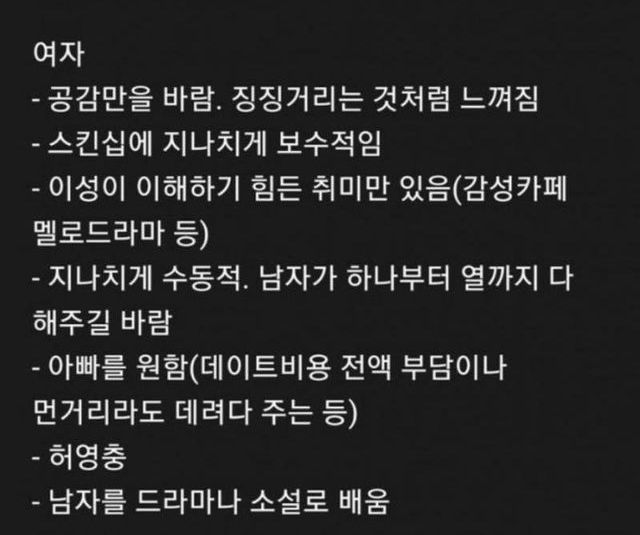 남녀 모쏠 특징