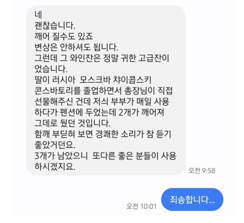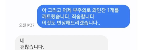 에어비앤비 숙소에서 와인잔 ㄲ뜨리고 사장님한테 받은 문자..