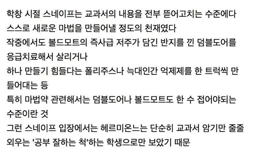 스네이프가 헤르미온느를 싫어하는 이유