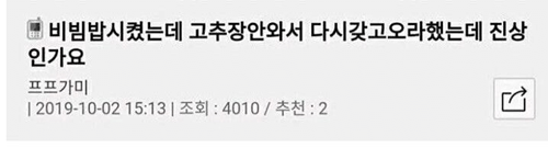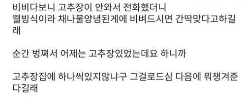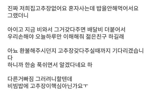 배달 비빔밥 고ㅊ장 안왔는데 진상이야?