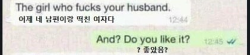 어제 네 남편이랑 ㄸ친 여ㅈ다