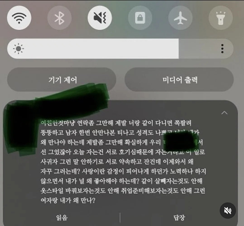 뚱ㄸ한 여자가 같이 ㄸ친 남자한테 받은 메시지