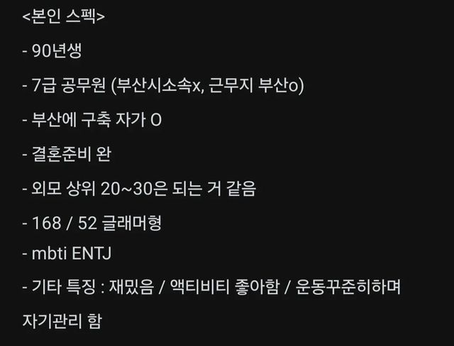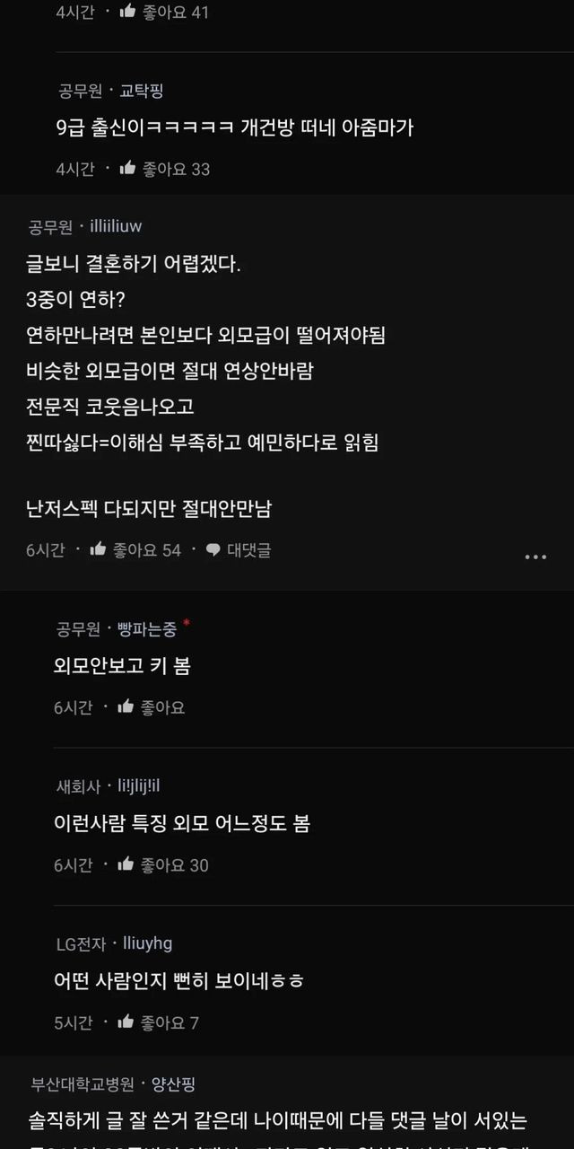 30중반 공무원 여성이 원하는 남자 스펙
