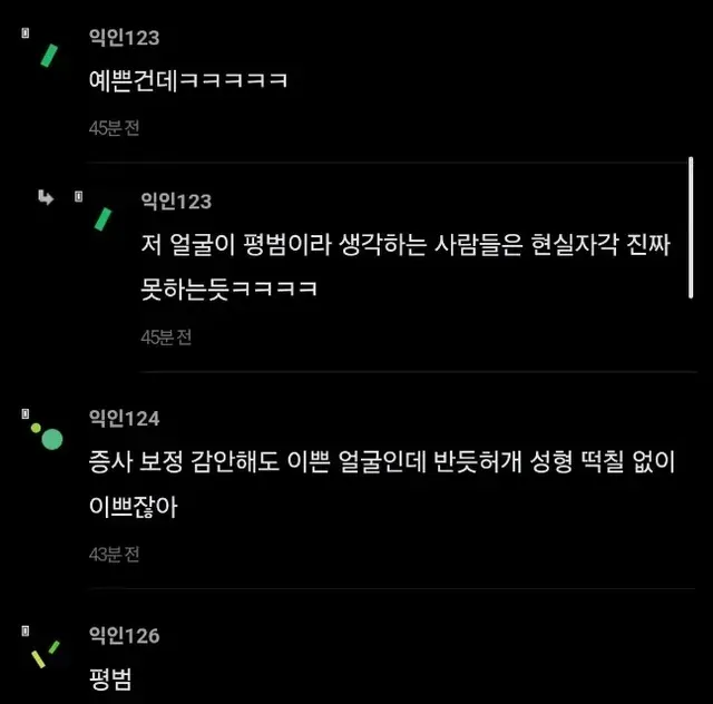 현실에서 예쁘장한 외모다 vs 아니다 갈리는중인 외모