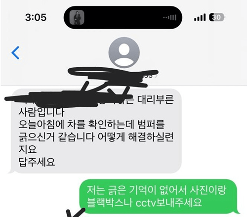차 범퍼가 긁혔다고 대리기사에게 문자보낸 아줌마