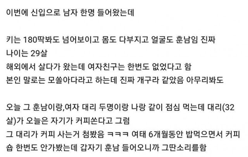 우리 회사에 진짜 훈남 들어왔는데 ㅈㄴ 부러운 썰