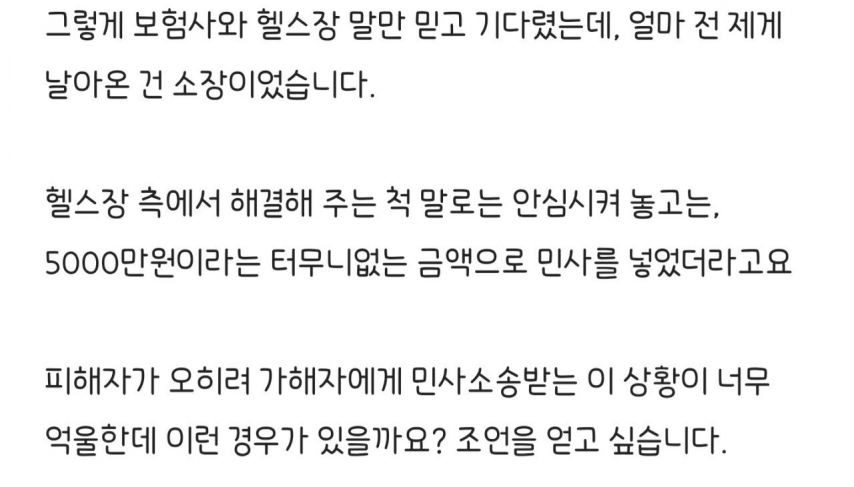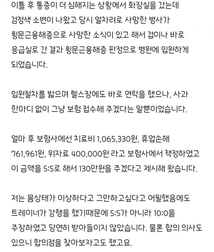 헬스장에서 PT받다가 입원했는데 환자한테 민사 소송한 헬스장