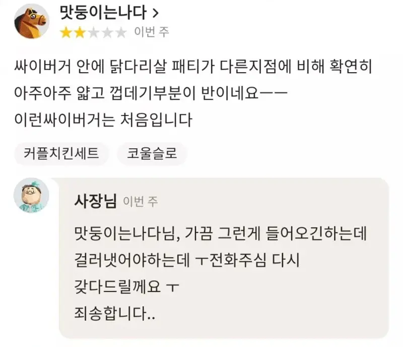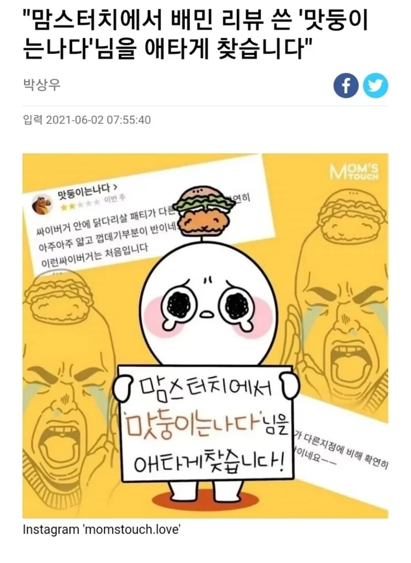 맘스터치 고객이 남긴 리뷰 스노우볼