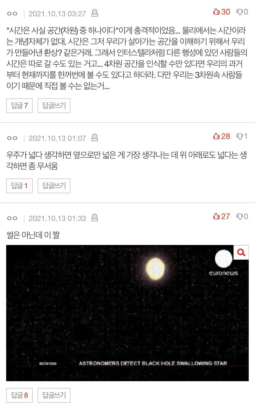 살면서 본 우주썰중 젤 ㅊ격적이었던거 뭐 있냐