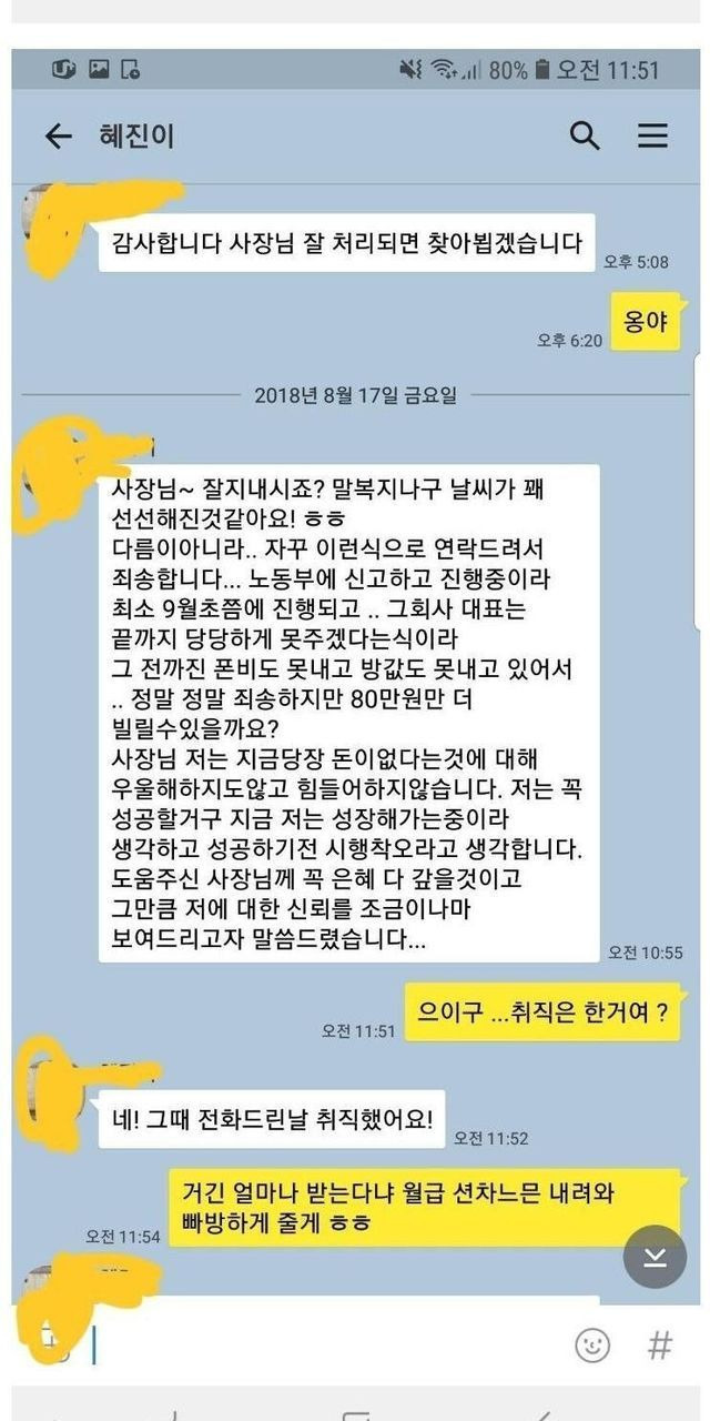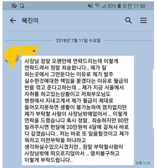 그만둔지 1년 된 알바한테 연락이 왔어요