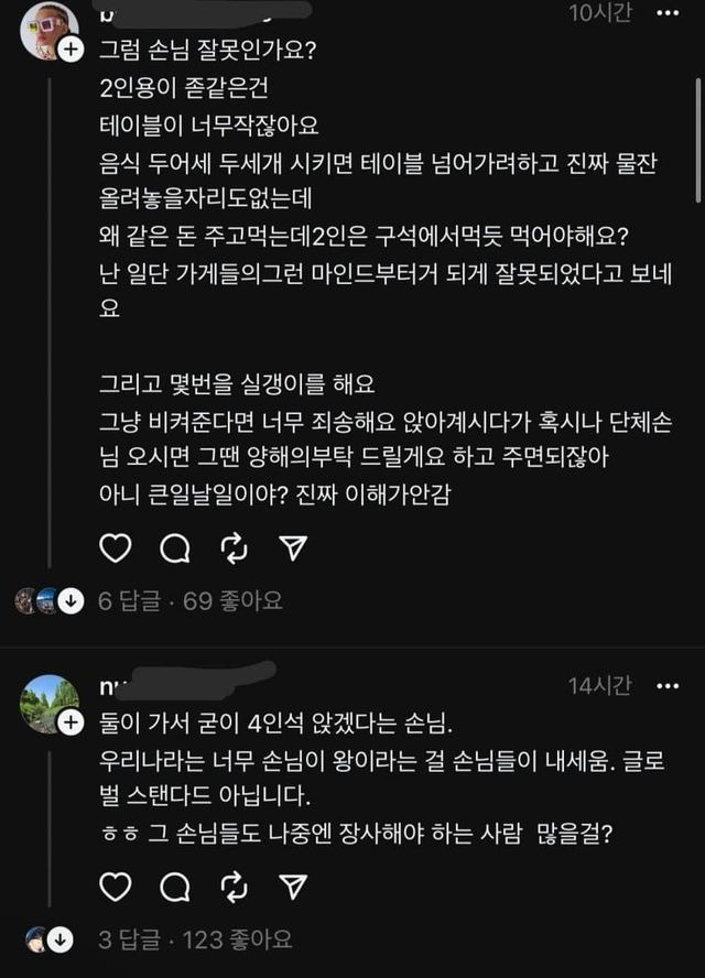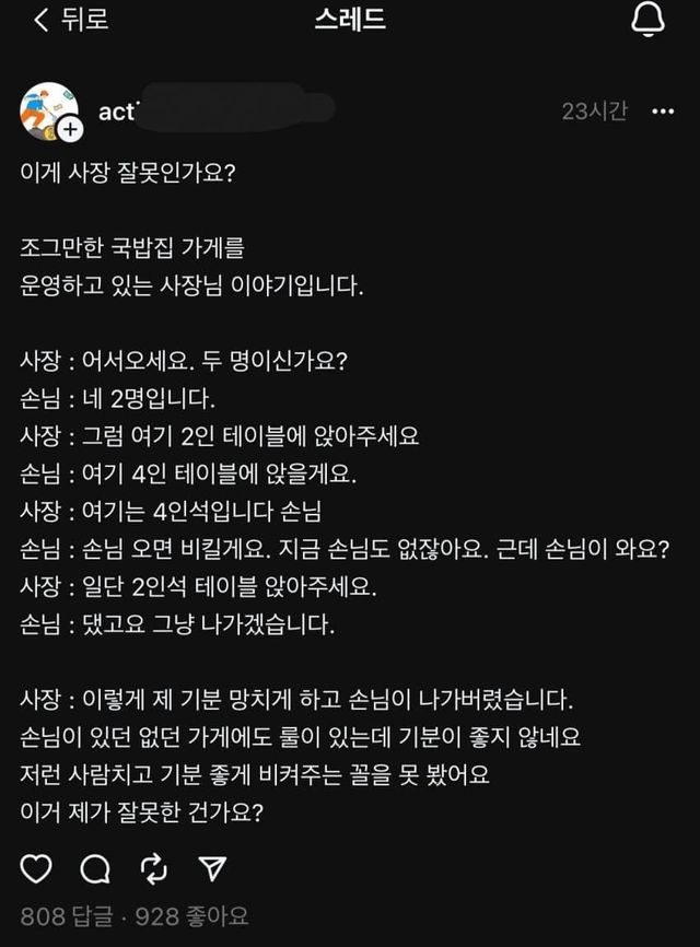 현재 논란중인 식당좌석배치 사장손님다툼