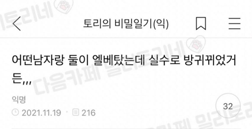 어떤 남자랑 엘베탔는데 실수로 방귀 뀌었거든