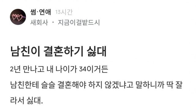 남친이 나랑 결혼하기 싫대