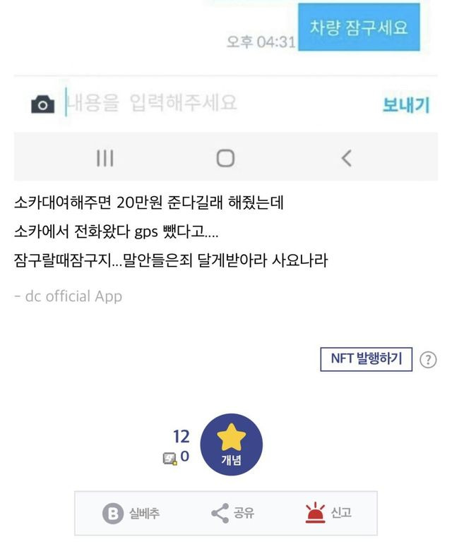 20만ㅇ에 쏘카 명의 빌려준 디씨인(+후기)