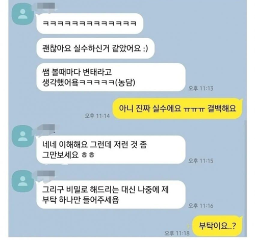 같은 학교 여자쌤한테 실수로 ㅇㅎ 사진 보냄