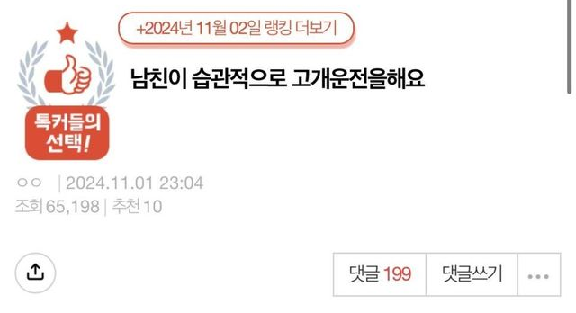남친이 고개 운전을 해요