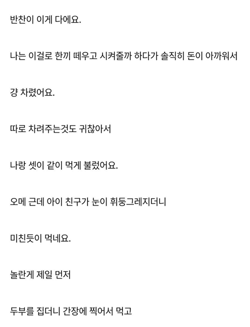 아이 친구가 저녁밥을 먹는데 반찬을 거덜 내네요