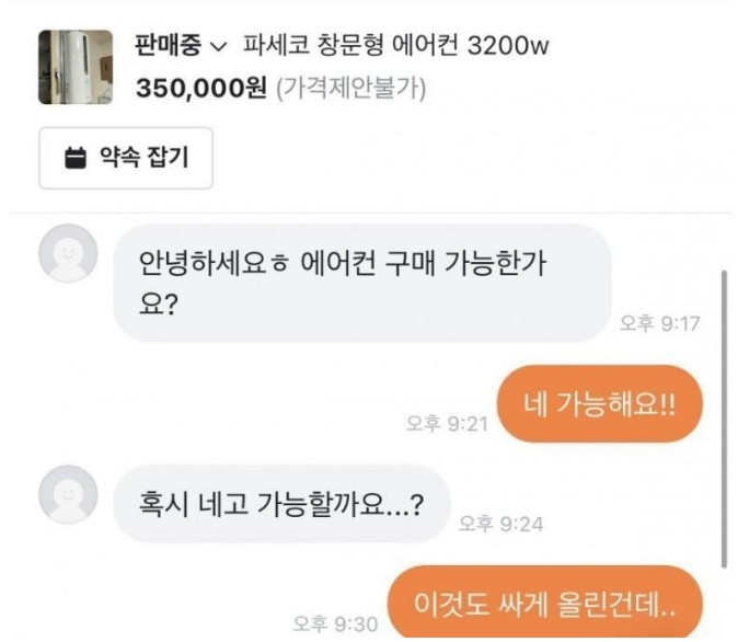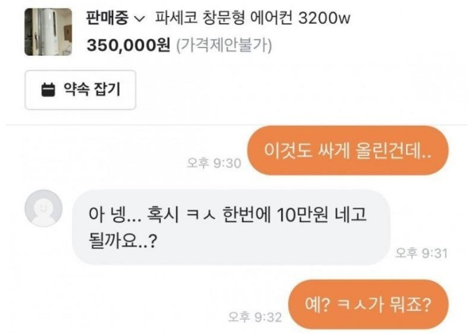 ㅋ스 한번에 10만ㅇ 네고 가능하냐는 당근녀