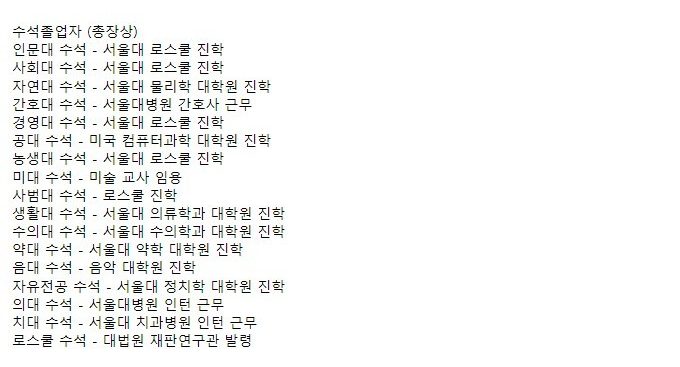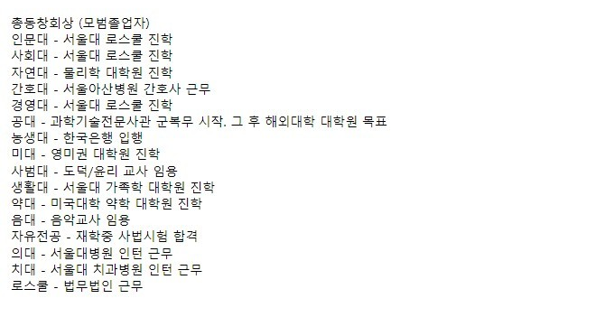서울대학교 수석졸업자들의 진로 현황