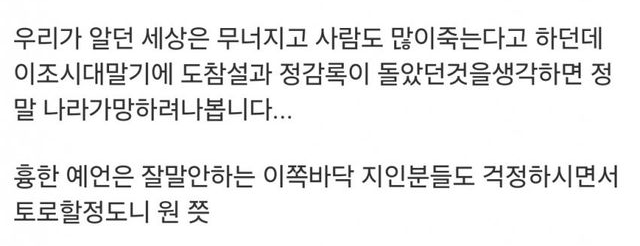 요즘 무속인들 사이에서 돈다는 흉흉한 예언