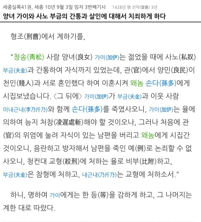 조선왕조실록에 기록된 신분을 초월한 사랑