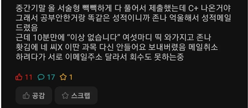 오답처리에 화가나서 참지 못한 대학생
