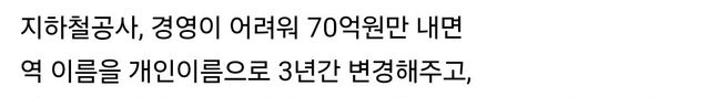 70억만 내면 지하철역에 개인이름을 넣어줌