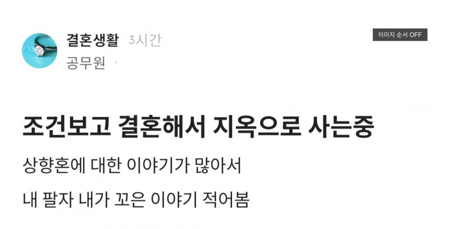상향혼 조건보고 결혼해서 ㅈ옥으로 살아간다는 공무원 한녀